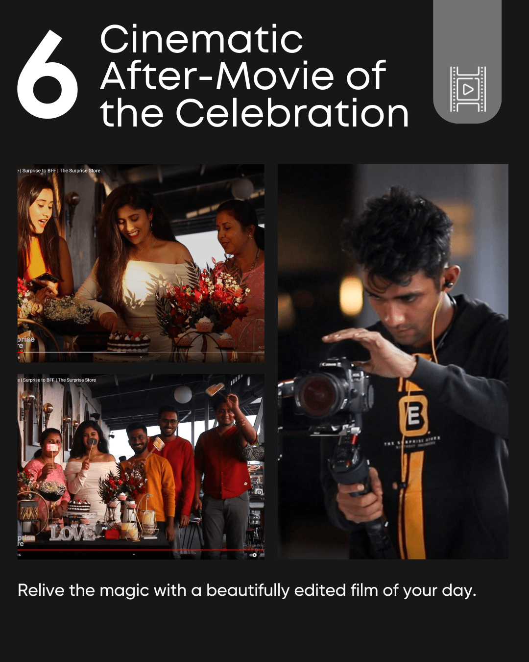 Your entire journey is professionally captured and delivered as a beautifully edited film within 48 hours.