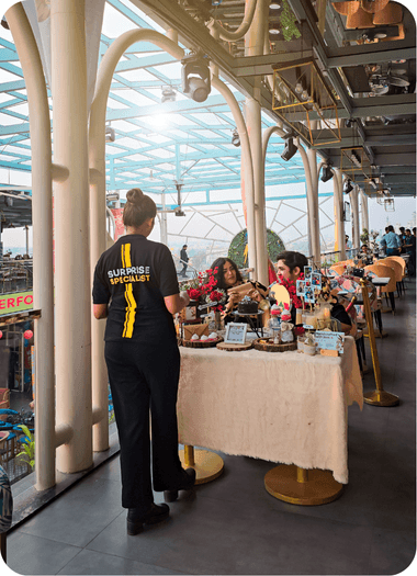 We block a private section just for you in our Surprise Zone cafés. No crowd. Just your person, your story, and perfect lighting.